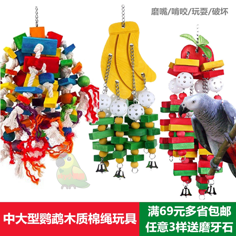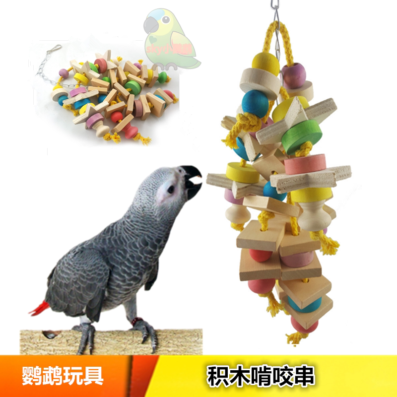 Parrot Toys Solid Wood Nibbling Grinding Mouth Building Block String Climbing Large Parrot Utensils Bird Cage Station Rack Bird Supplies