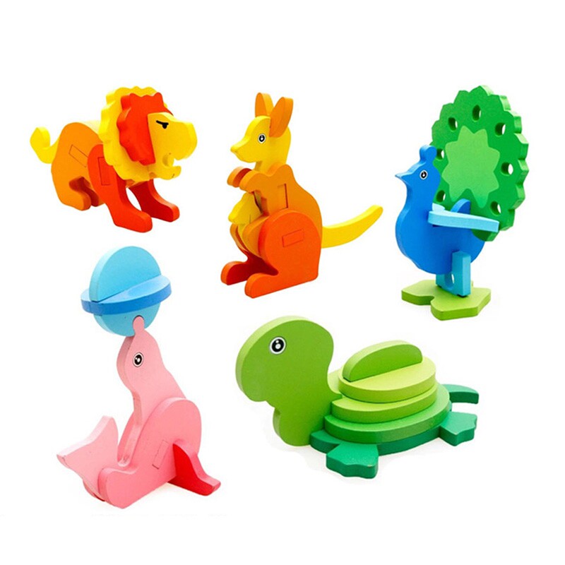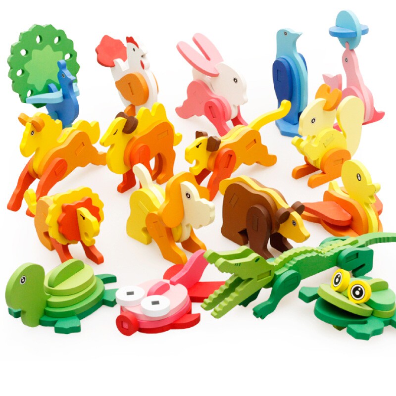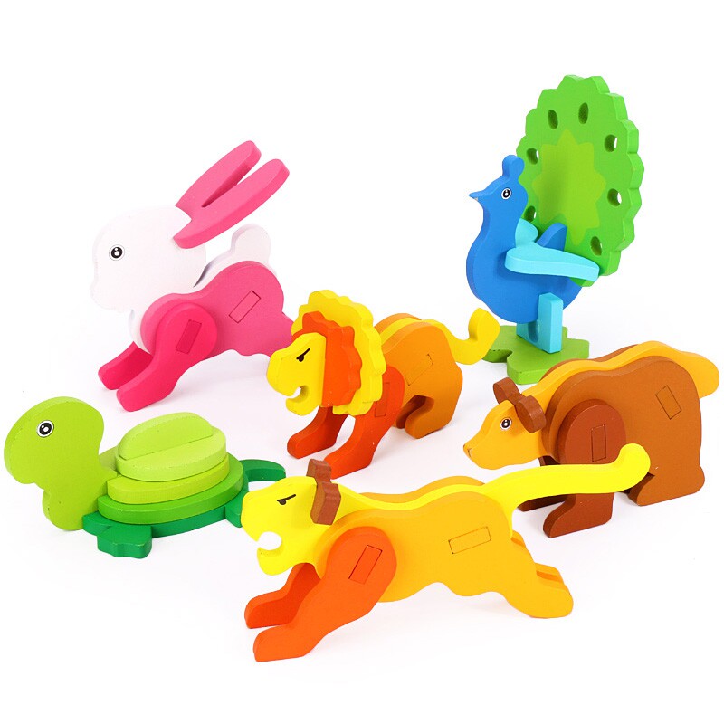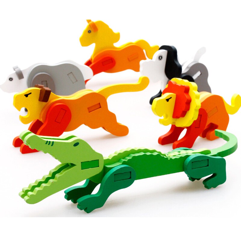 Solid Jigsaw Wood 3D Model Animal Jointed Board Baby Early Lessons Intellect Children Building Blocks Disassembly Combined Toys