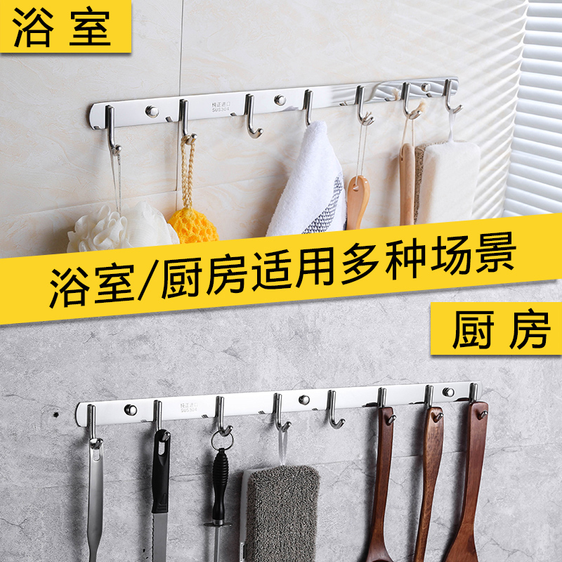 Kitchen Hook Stainless Steel Hanger Wall Hanging Wall Coat Hook Clothes Free Punch Powder Room Bathroom Towel