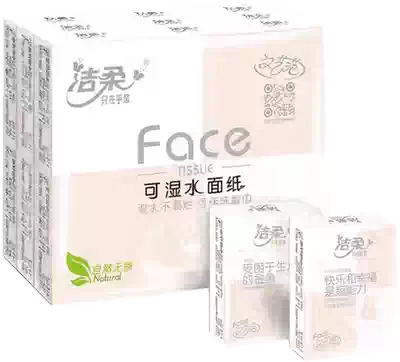 Jie soft paper handkerchief Face no fragrance wet water paper towel napkin 4 layers Super Mini small bag type facial tissue 18 packs