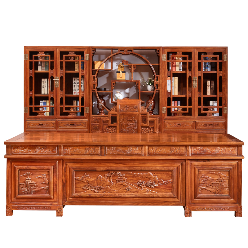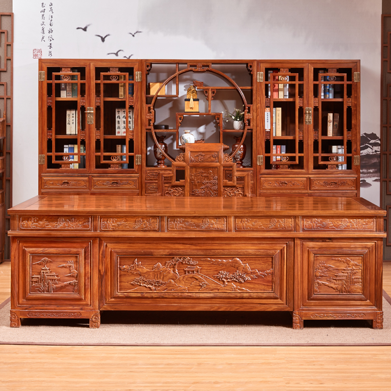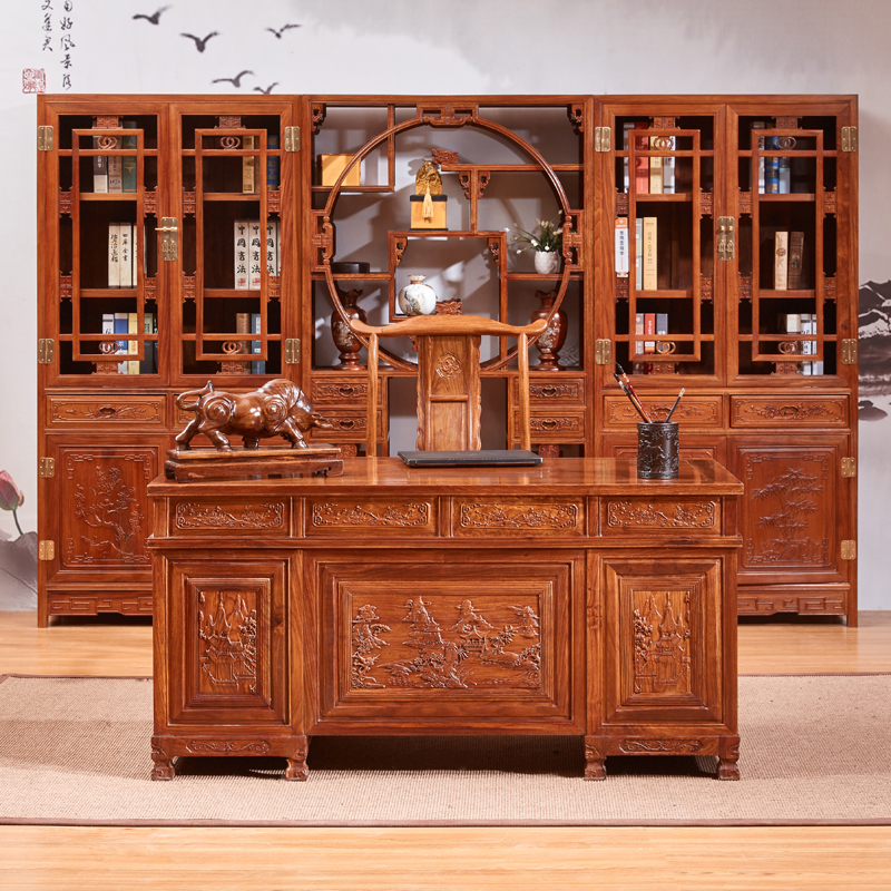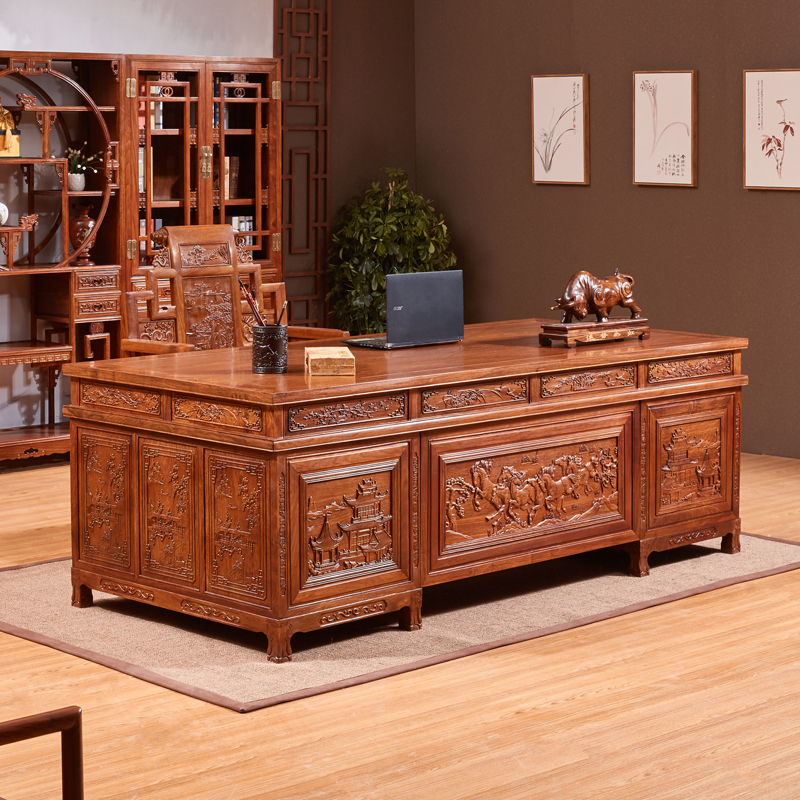 Chinese style red wood desk combined office Hedgehog Purple Sandalwood Furniture Solid Wood Owner Desk Flowers Pear Wood Big Bandae