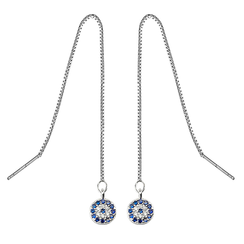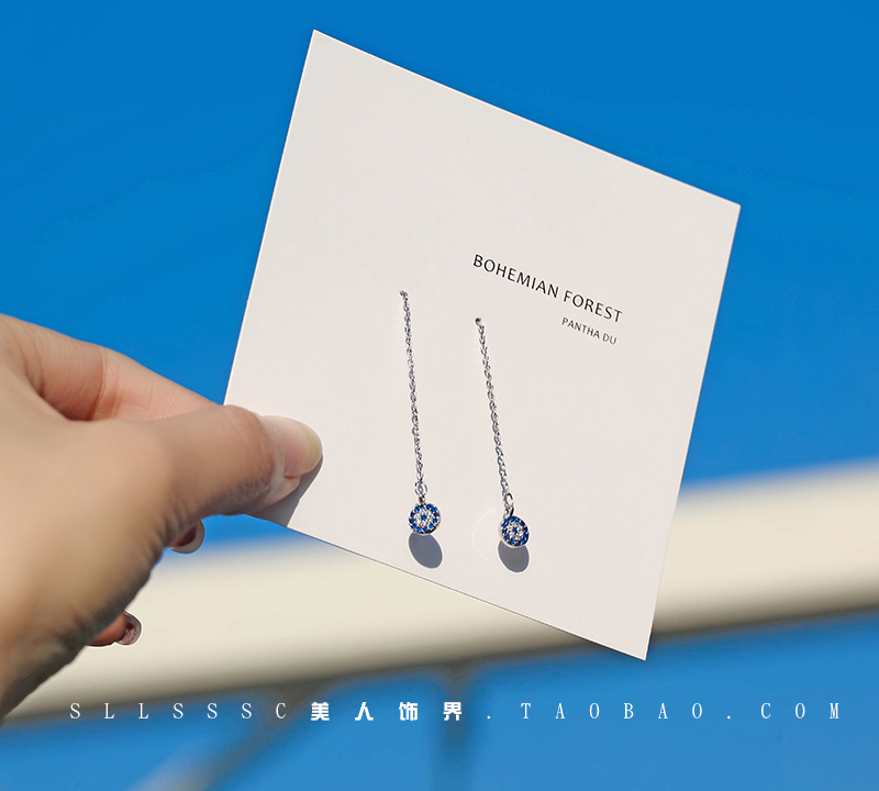 S925 sterling silver Turkish devil's eye ear line hypoallergenic women's long earrings blue eye drop earrings student tide’