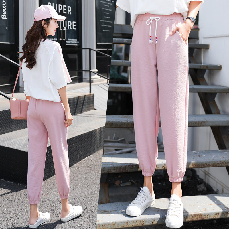Casual pants women's 2021 summer new thin Korean version loose and wild student bundle foot movement cotton and hemp nine-point Harlan pants