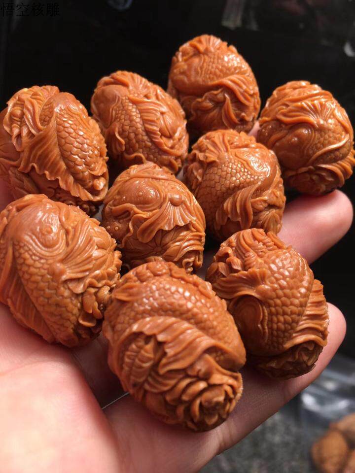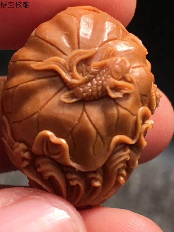 Nine carp playing with olive core, lotus core carving hand string, high-quality goods, big seed, unpopular text play bracelet, men's hand-held olive beard