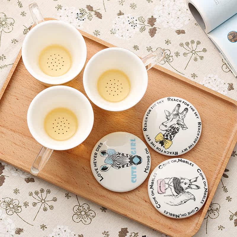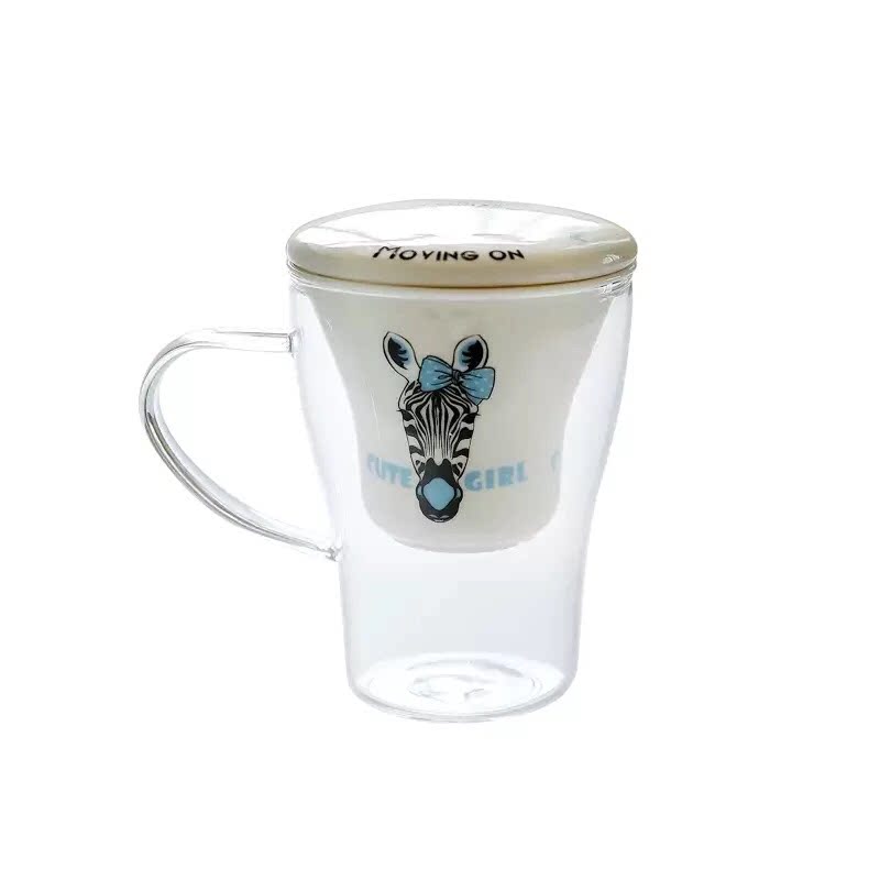 Flower Tea Cup Practical Office Single Tea Cup Cartoon Animal Glass Breakthrough Tea Cup Ceramic Tea Separation Cup