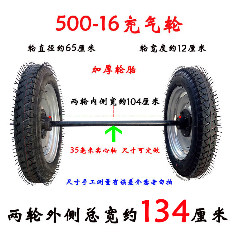 26 inch heavy duty rubber pneumatic tire tread wheel 500-16 two-wheel connecting axle carriage wheel gun car trolley pipe