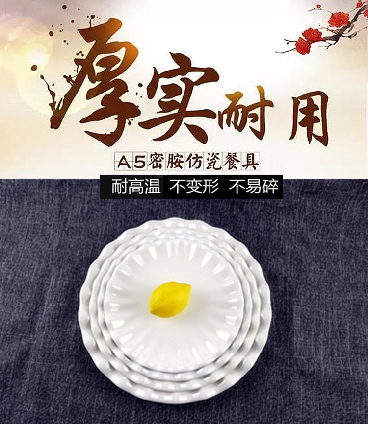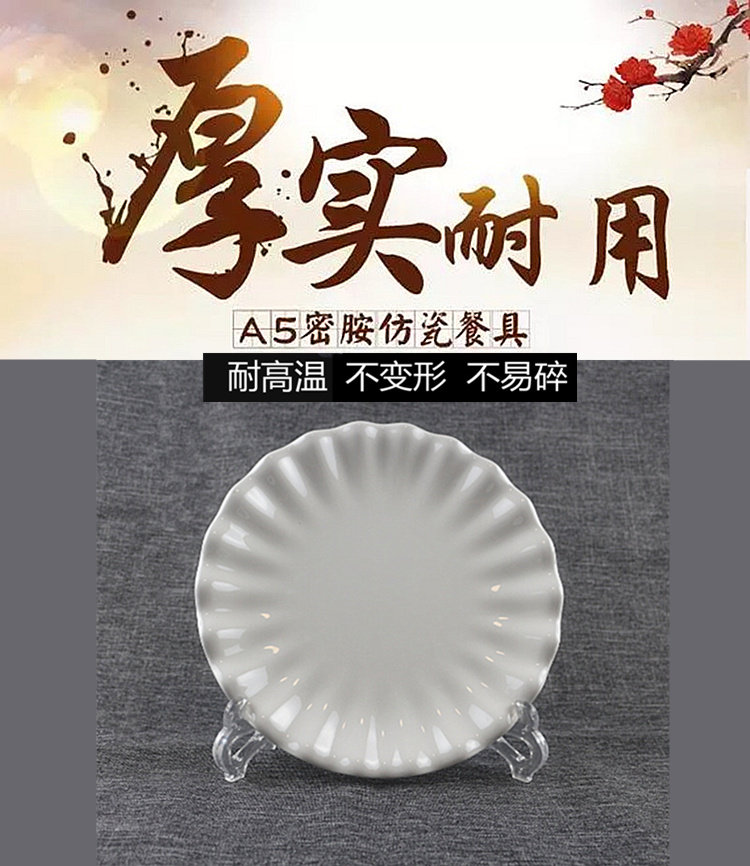 A5 round melamine tableware bone dish imitation porcelain white dish plastic disc flat plate fast food plate buffet plate dish