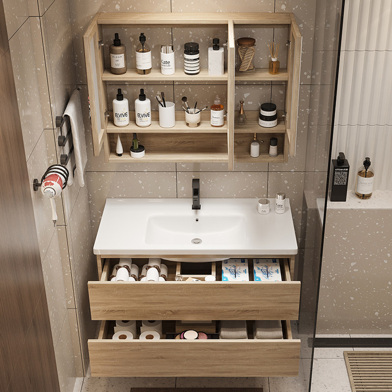 Nordic modern simple bathroom cabinet Solid wood hanging cabinet American cabinet bathroom mirror cabinet wash face wash basin cabinet combination