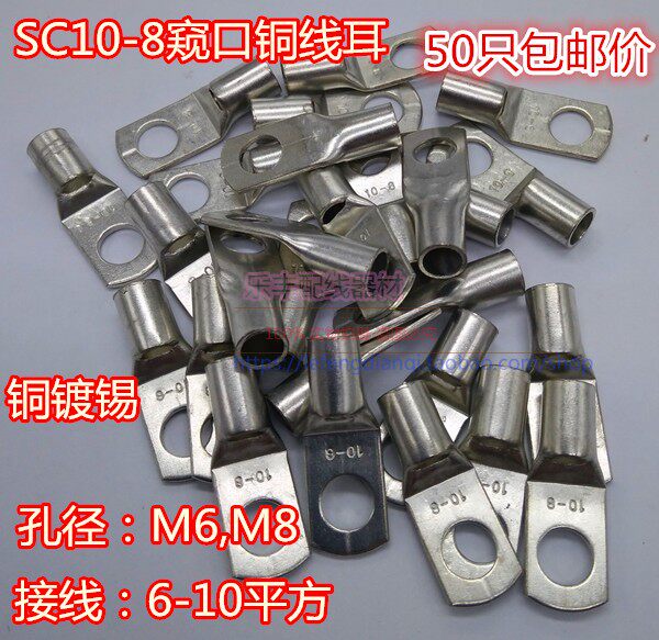 SC10-6-8 Peep terminal block connection 6-10 square wire copper tinned wire ear connector 50pcs