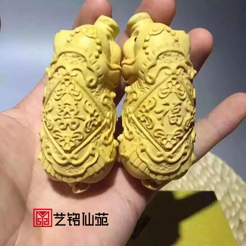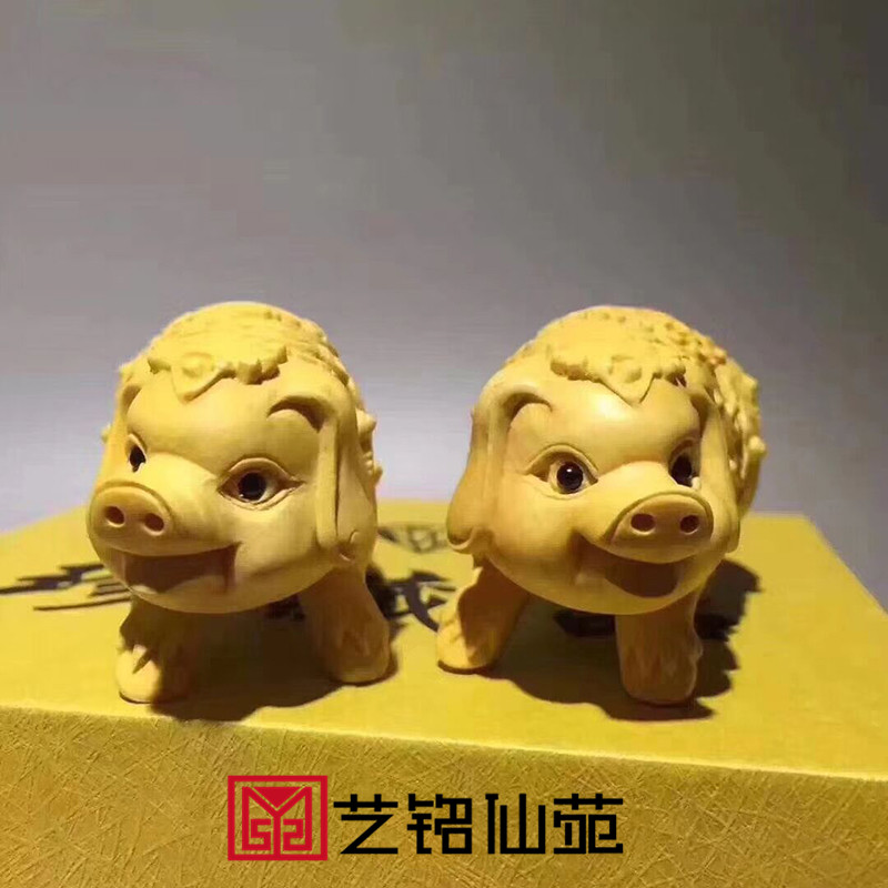 A pair of boxwood happy pigs carved animal personality ornaments carved gifts Popular tea pet lucky pigs two