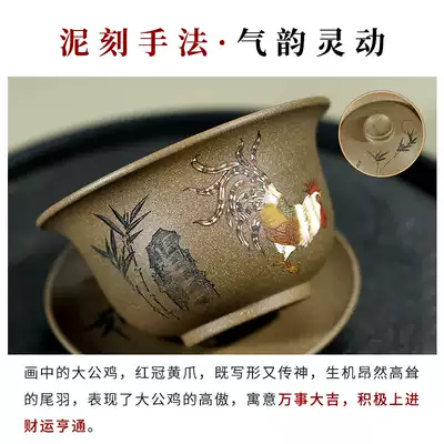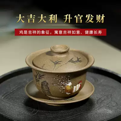 Qiankun in the cup Yixing Purple sand cover bowl Mud painted rooster Good luck Kung Fu Sanchai cover bowl Large tea bowl