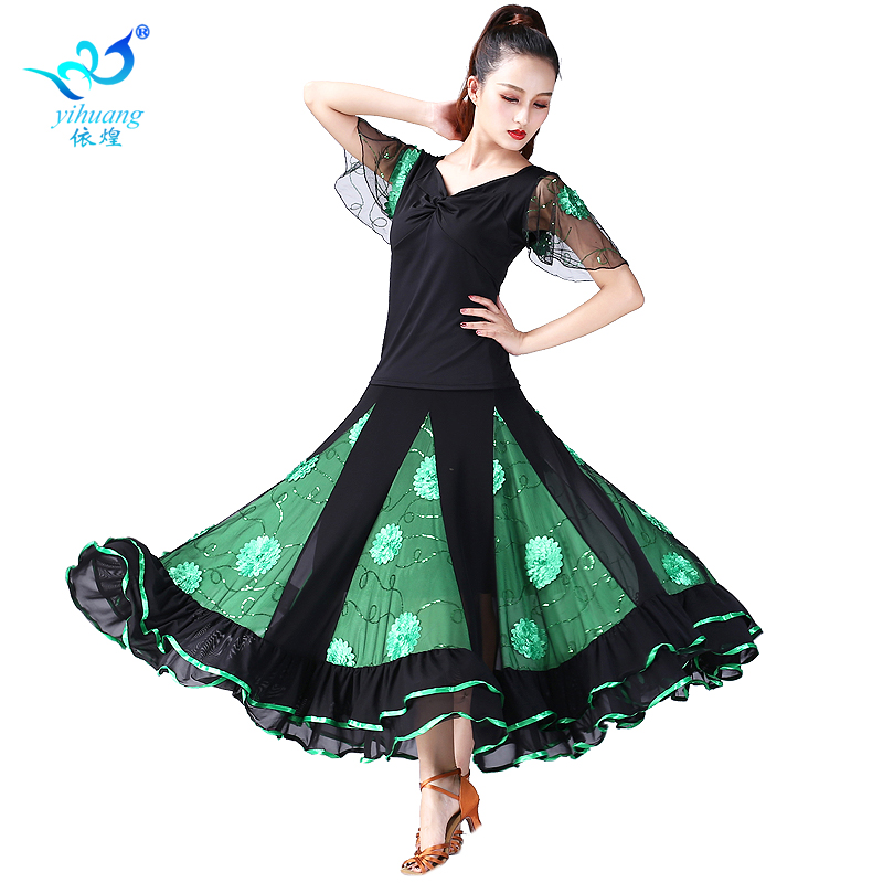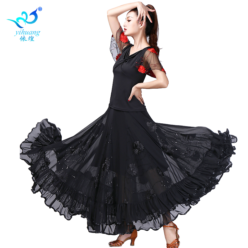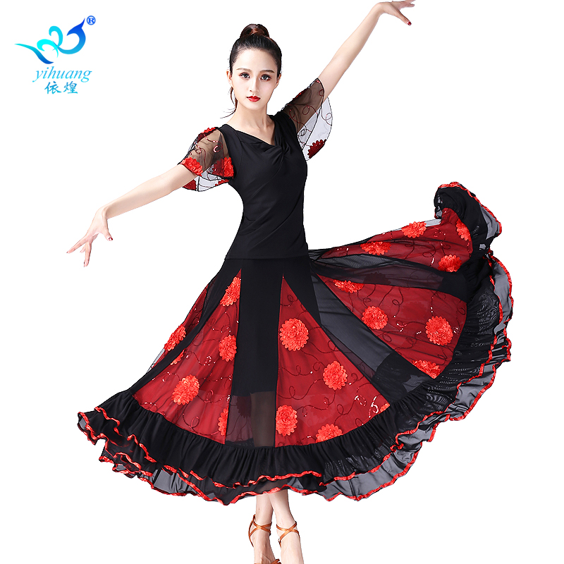 New modern dance waltz social dance national standard dance tango costume flower adult female skirt suit