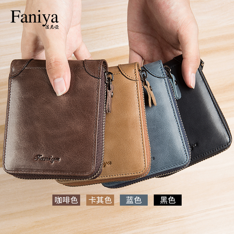 Men's wallet short leather zipper multifunctional card bag cowhide 2021 new explosive men's wallet wallet