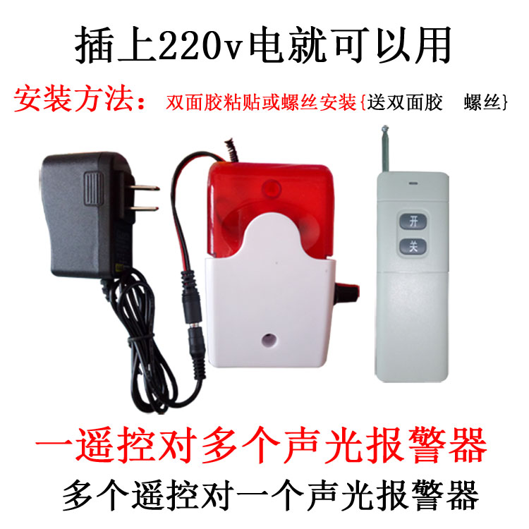 One remote control with adjustable audible and visual alarm One remote control 2 adjustable audible and visual alarm One remote control 3 adjustable sound and light siren one remote control 4 adjustable sound and light siren 2 remote control