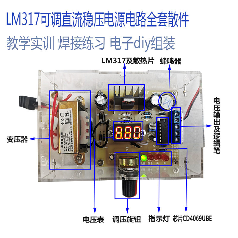 LM317 adjustable DC stabilized voltage supply diy kit Welding exercise board practical training electronic DIY making loose pieces