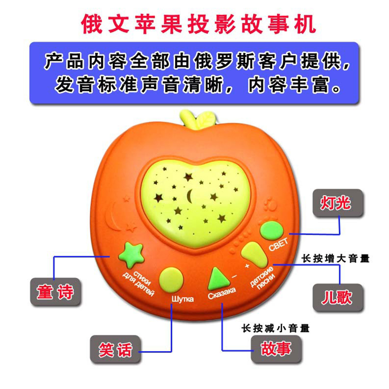 Russian Small Apple Projection Storytelling Machine Russian Children Puzzle Learning Machine Light Music Toy Russian