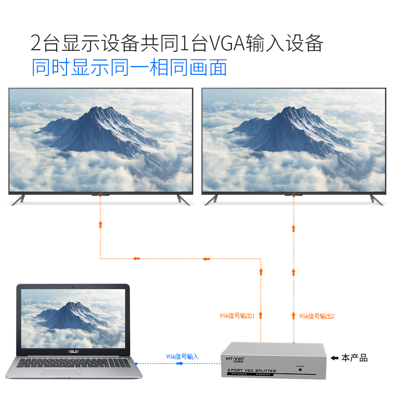 Maituovici MT-2502K 2 mouth high-definition VGA dispenser computer to pick up TV projector 1 in 2 out