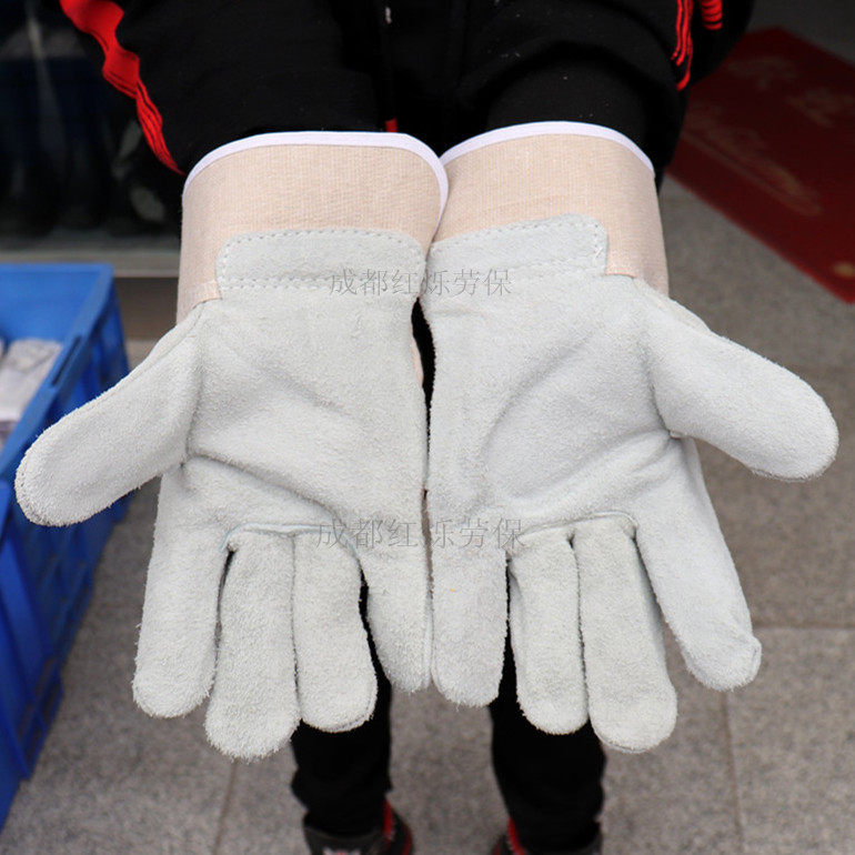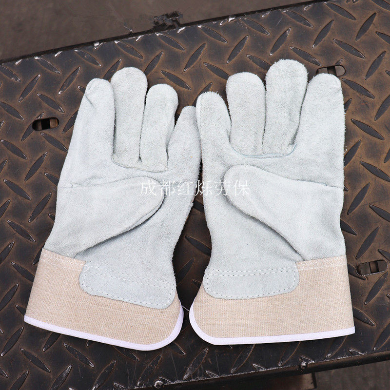 Electric welding gloves short flower leather high temperature heat insulation anti-scalding cowhide welder gloves labor insurance welding wear-resistant leather