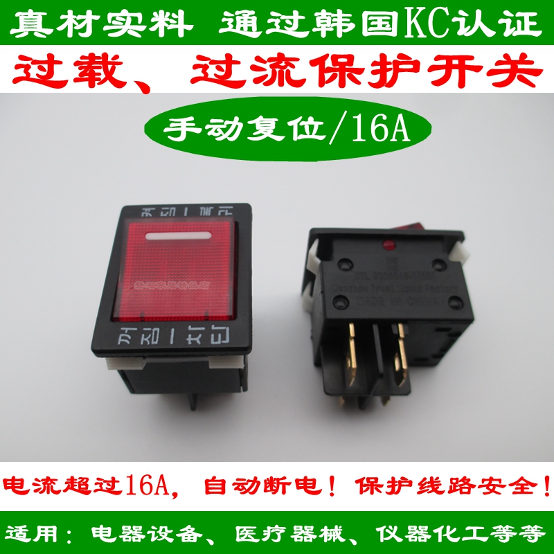 Overload overcurrent protection switch boat type switch rocker 4 foot 2 gear silver contact with lamp power switch 16A-Taobao