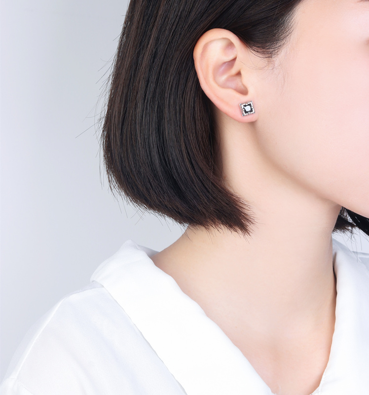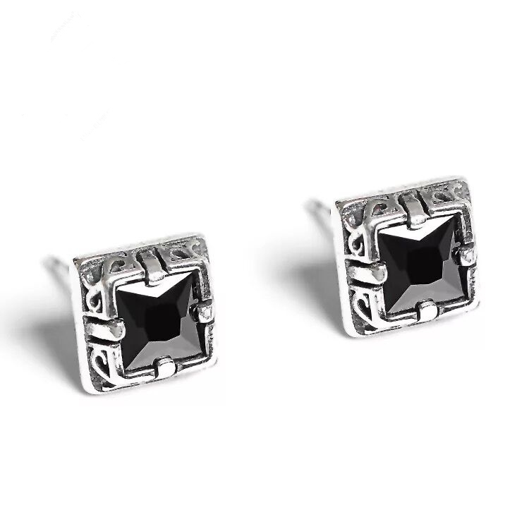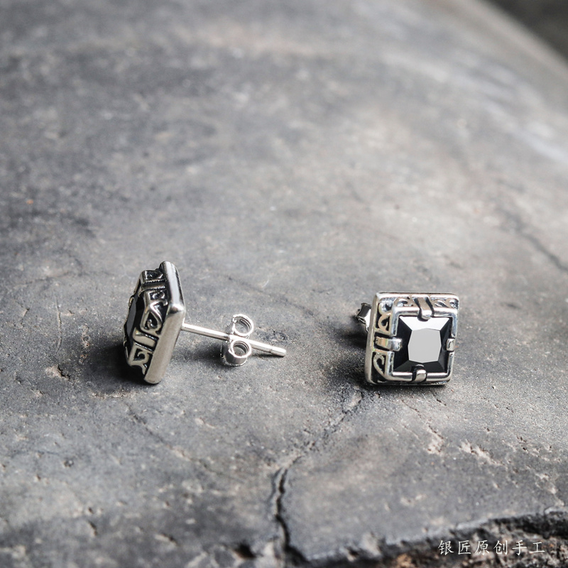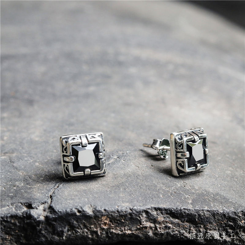 s925 sterling silver ear needle black agate retro carved men and women simple and versatile personality earrings hypoallergenic ear jewelry
