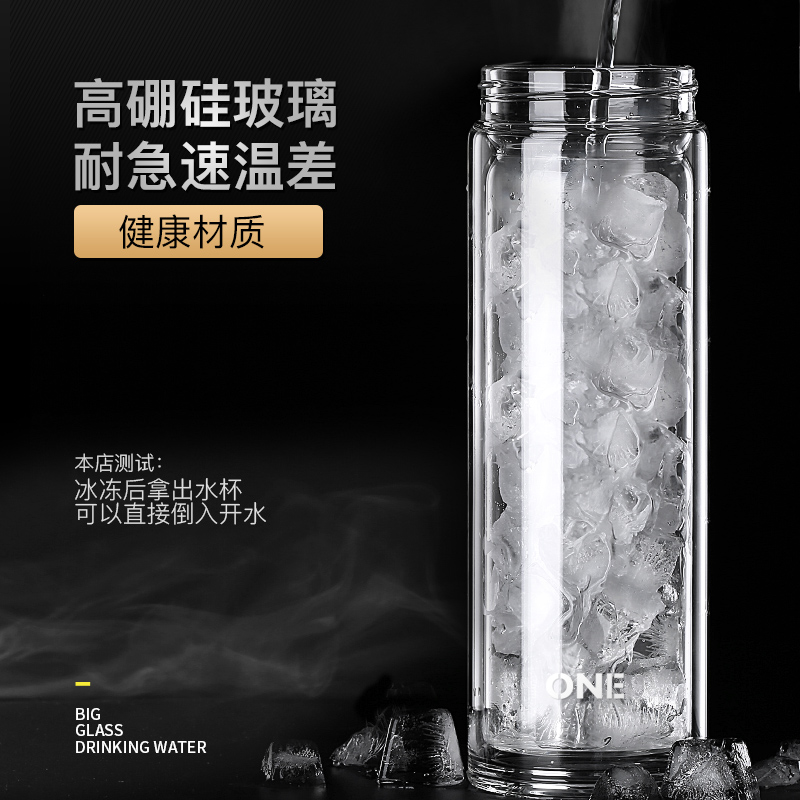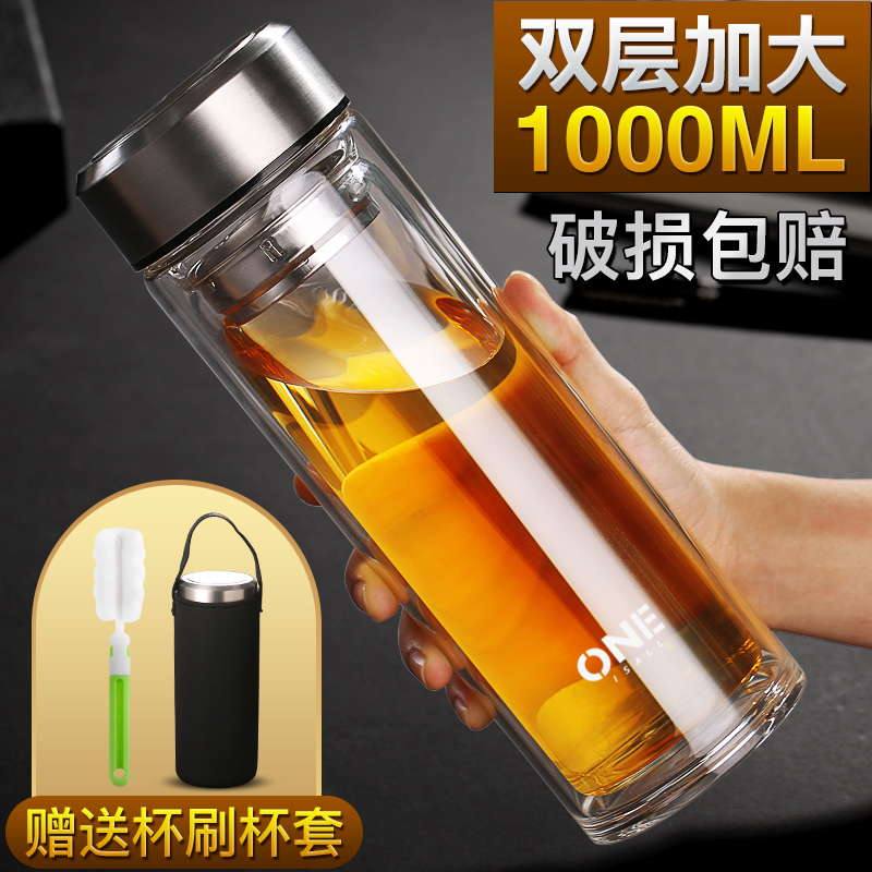 Heat insulation double glass cup anti-fall large capacity insulated cup tea man heat resistant water glass portable 1000ml cup
