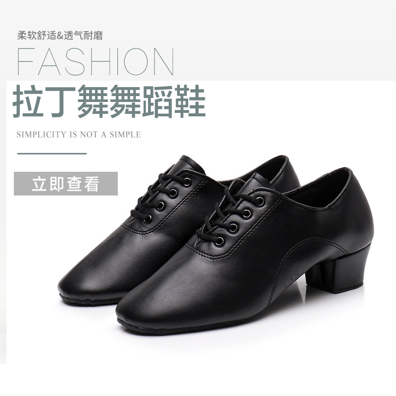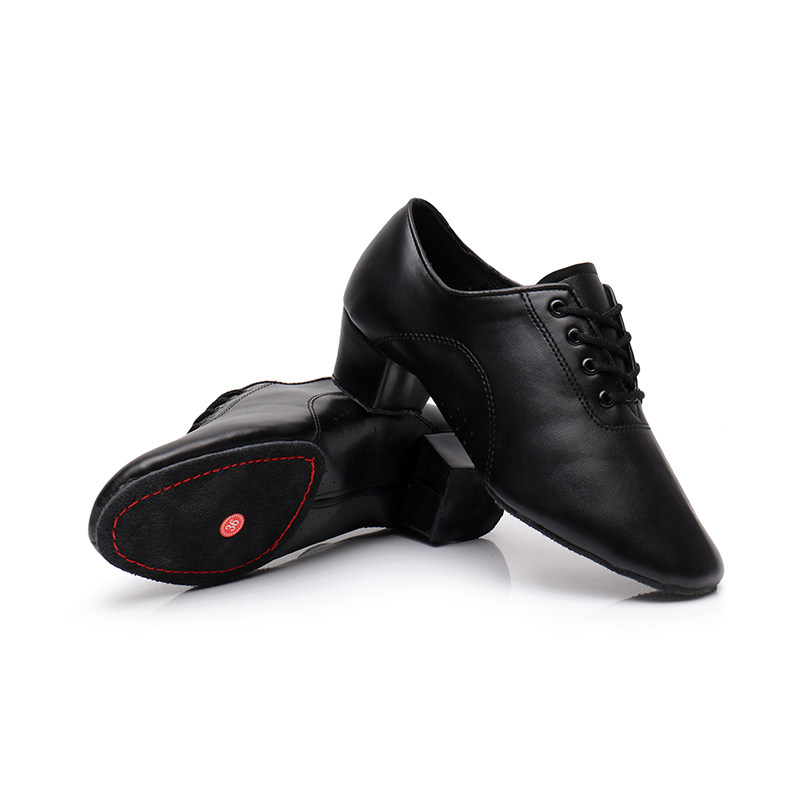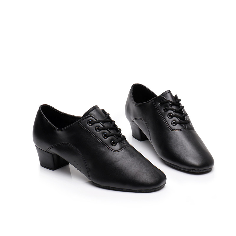 The boy's Latin shoes don't have a bright skin.