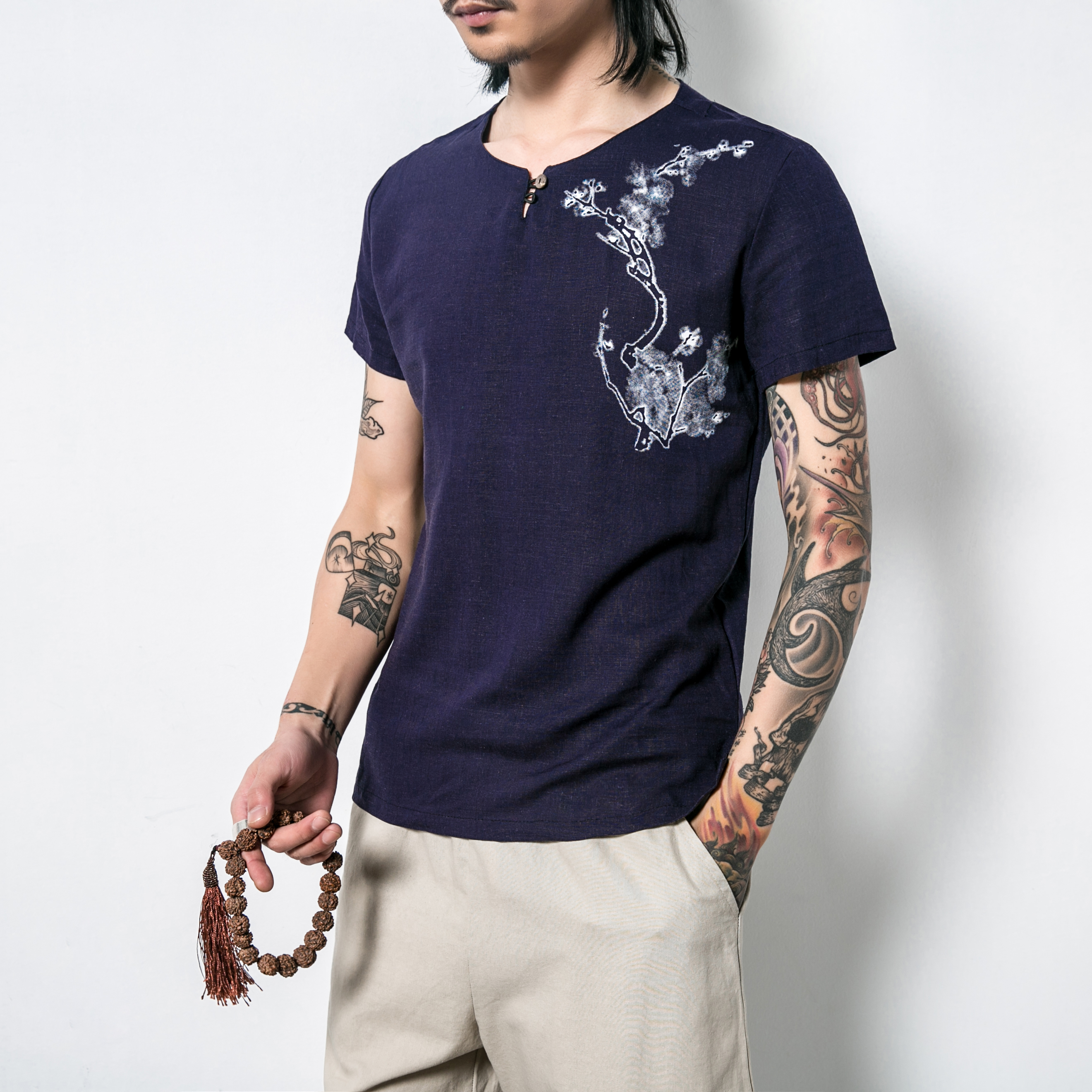 Lover - White Lover - Black 10,000 Years - White 10,000 Years - Black Ink Plum Blossom - White Ink Plum Blossom - Khaki Ink Plum Blossom - Navy Blue Color Printed Plum Blossom - White Color Printed Plum Blossom - Black