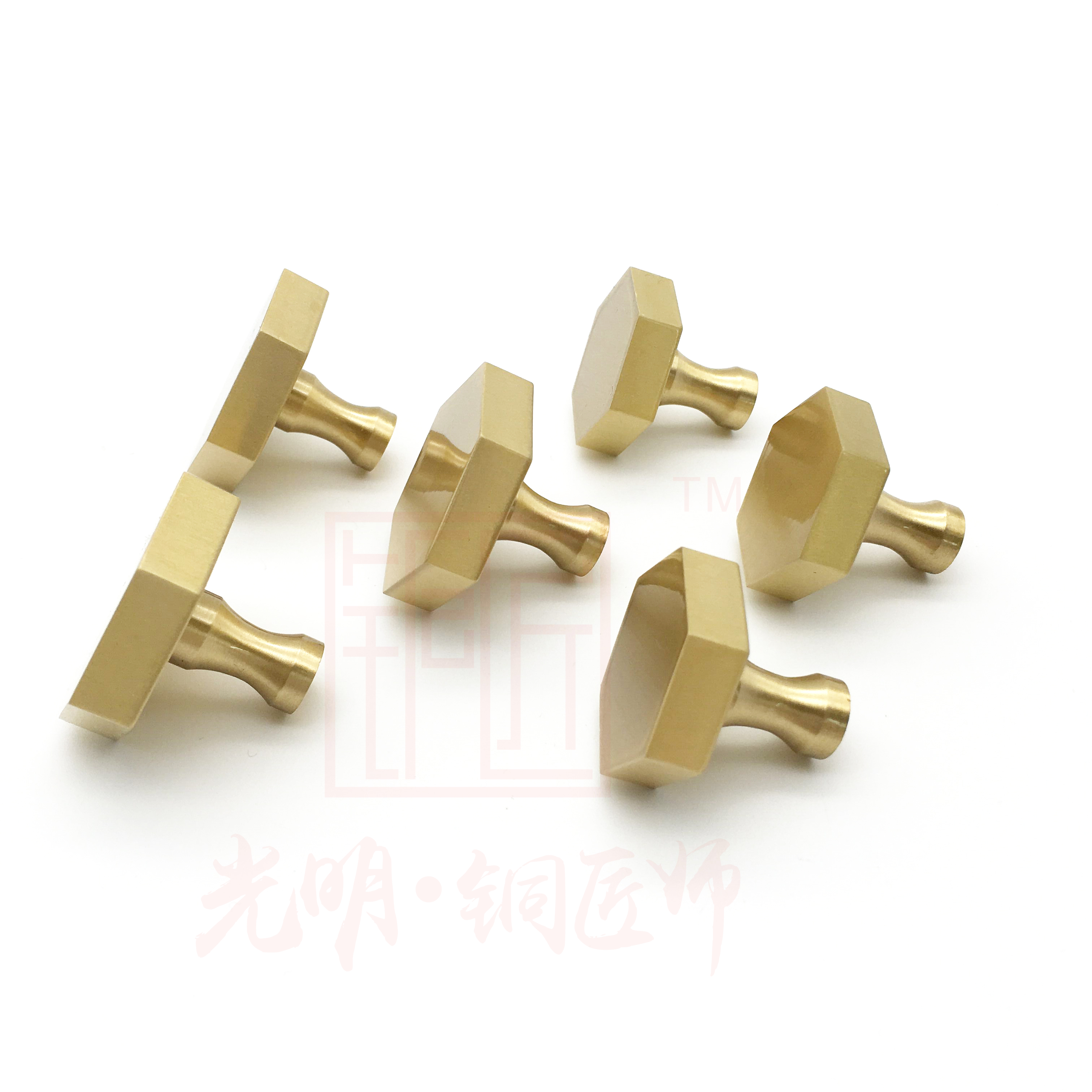 Bright copper craftsman single-hole overall cabinet wardrobe door pull modern minimalist drawer handle American full solid brass brushed