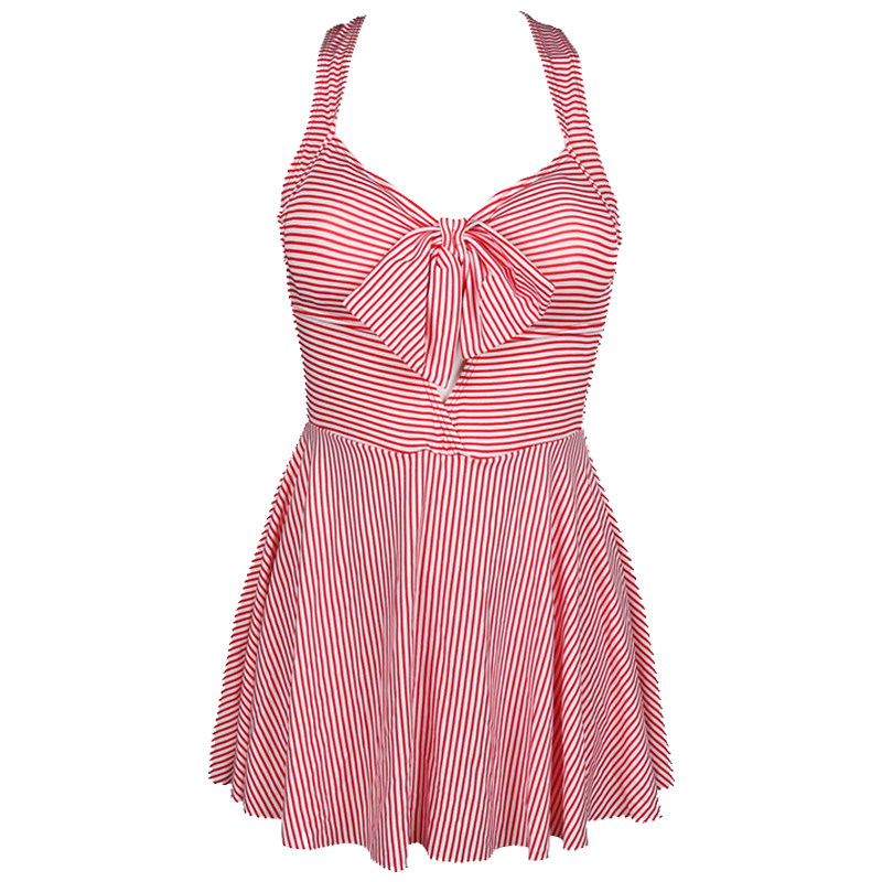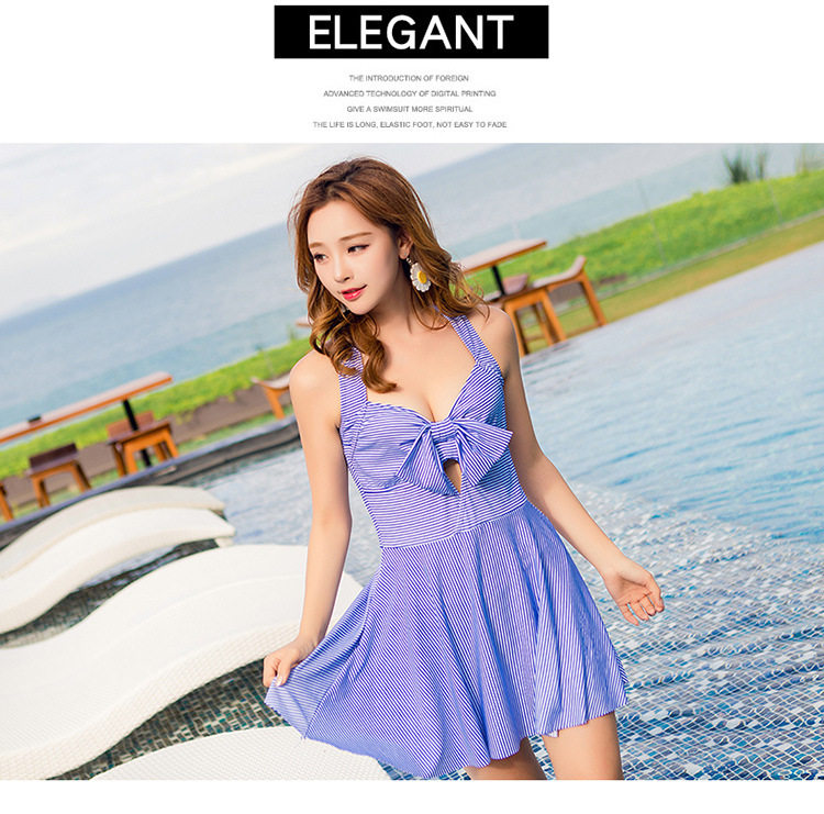 2019 new skirt-style swimsuit one-piece boxers thin belly cover conservative stripes bathing hot spring bathing suit women