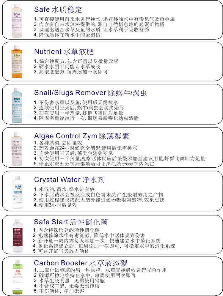 Water herb liquid fertilizer 250ml potassium fertilizer 250ml iron fertilizer 250ml nitrobacteria 250ml liquid carbon 250ml water quality stabilizer 250ml net aqua 250ml