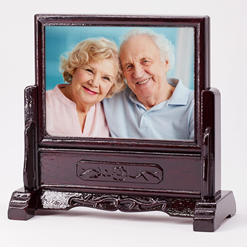 Golden tripod laser high temperature porcelain statue with solid wood phase frame to frame photo frame to make old man like frame honourable belt base