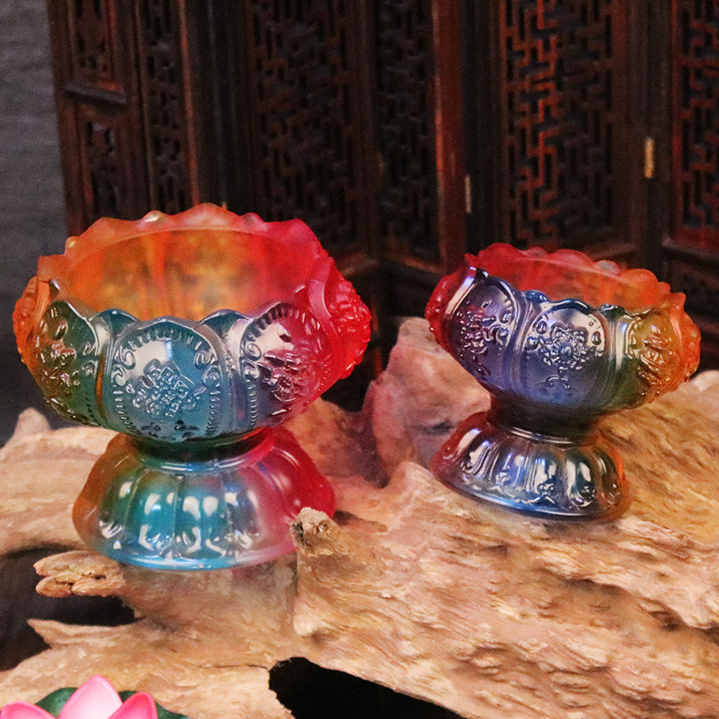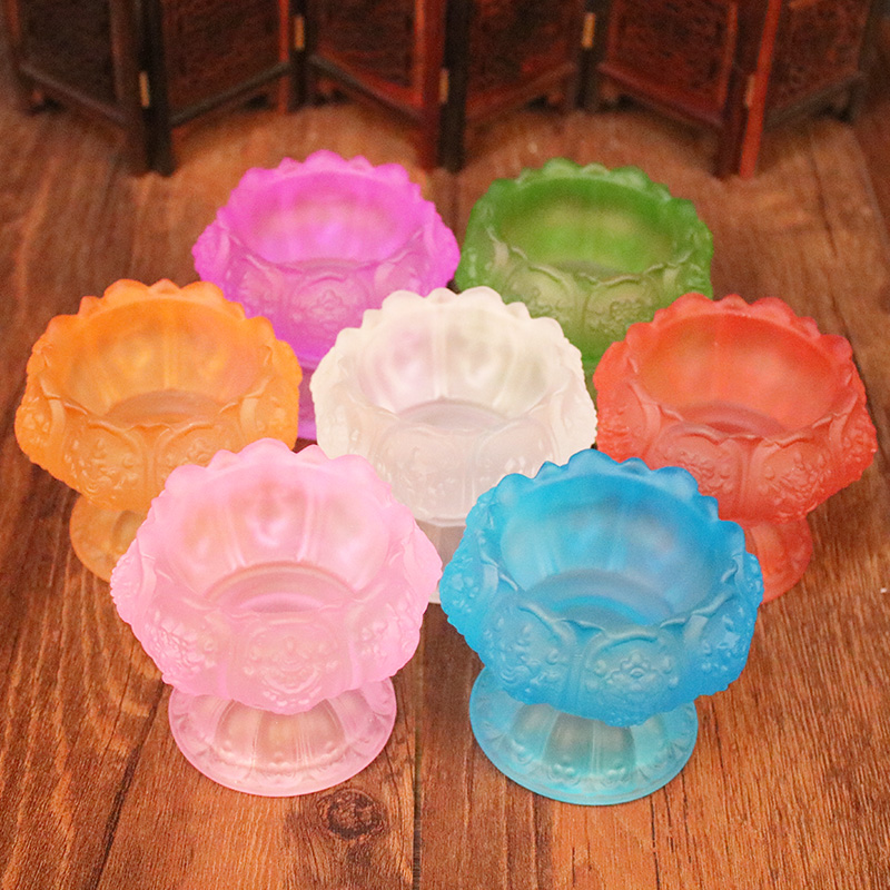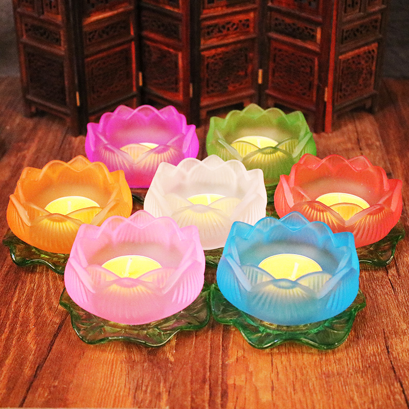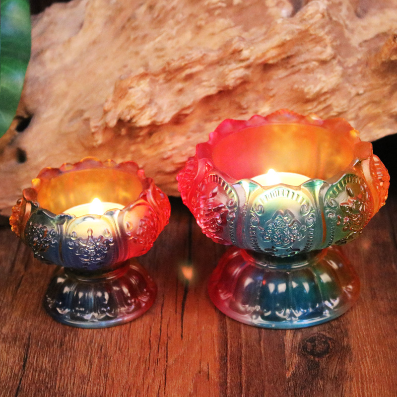 Seven-colored glazed lotus lamp holder ghee lamp holder for the Buddha lamp Changming lamp Electric wax candle holder Guanyin Buddha