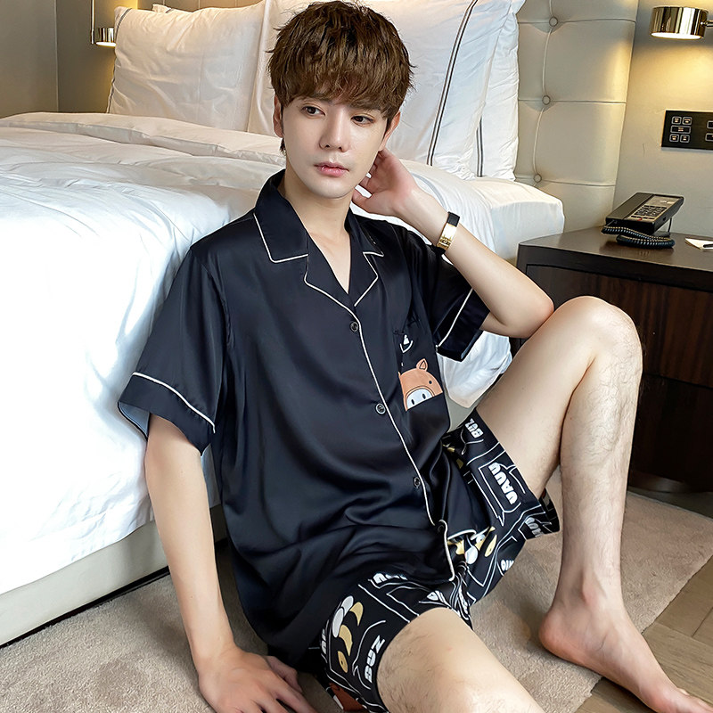 Pajamas Men Summer Silk Thin Men Home Clothes Ice Silk Summer Short Sleeve Shorts Plus Size 200 Jin Set