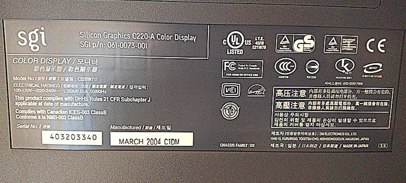SUN SGI C220 22-inch flat screen monitor inventory machine drawing and color correction first