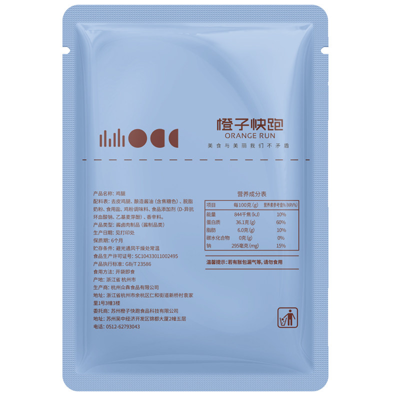 (Orange Run) High protein peeled fitness chicken legs at room temperature storage open bag ready-to-eat 130g