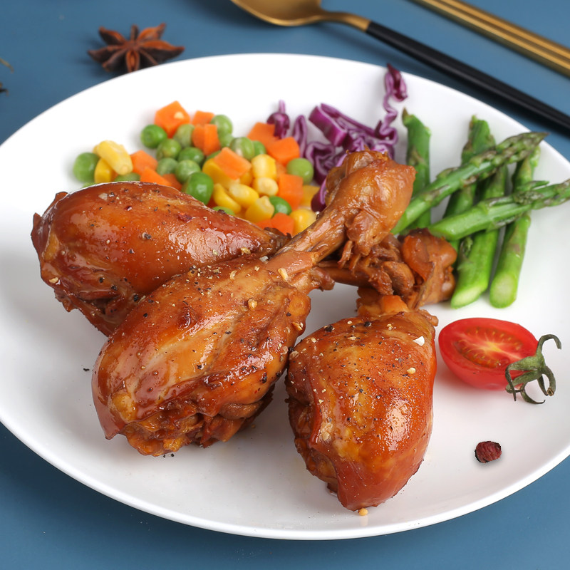 Peeled chicken legs Brewed soy sauce (with caramel color)Skimmed milk powder Edible salt Essence of chicken Food additives (D-isosorbic acid sodium ethyl maltol) Spices Food flavor