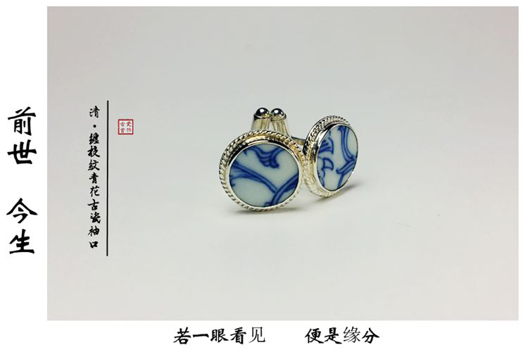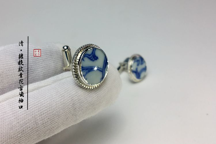 Qing Dynasty Blue Flower Porcelain Ancient Porcelain Pieces Sleeve Nail Men's Law Style Shirts Handmade Pure Silver Jewelry Light Extravagant Men Senior Cuff