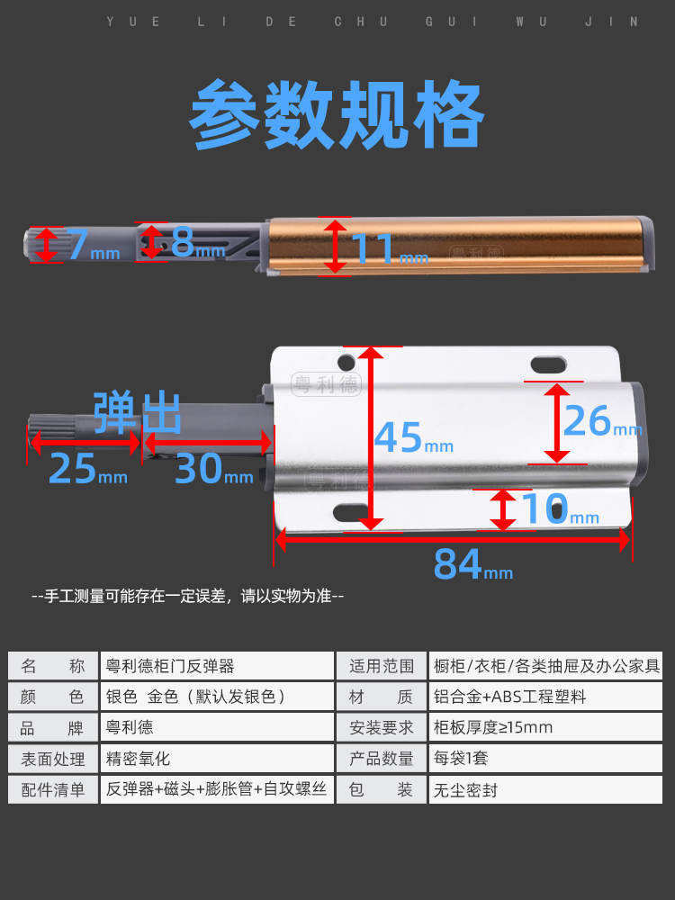 Integral cabinet door panel door opener Press bomb door switch Self-bomb invisible door Cabinet door rebound handle-free hinge