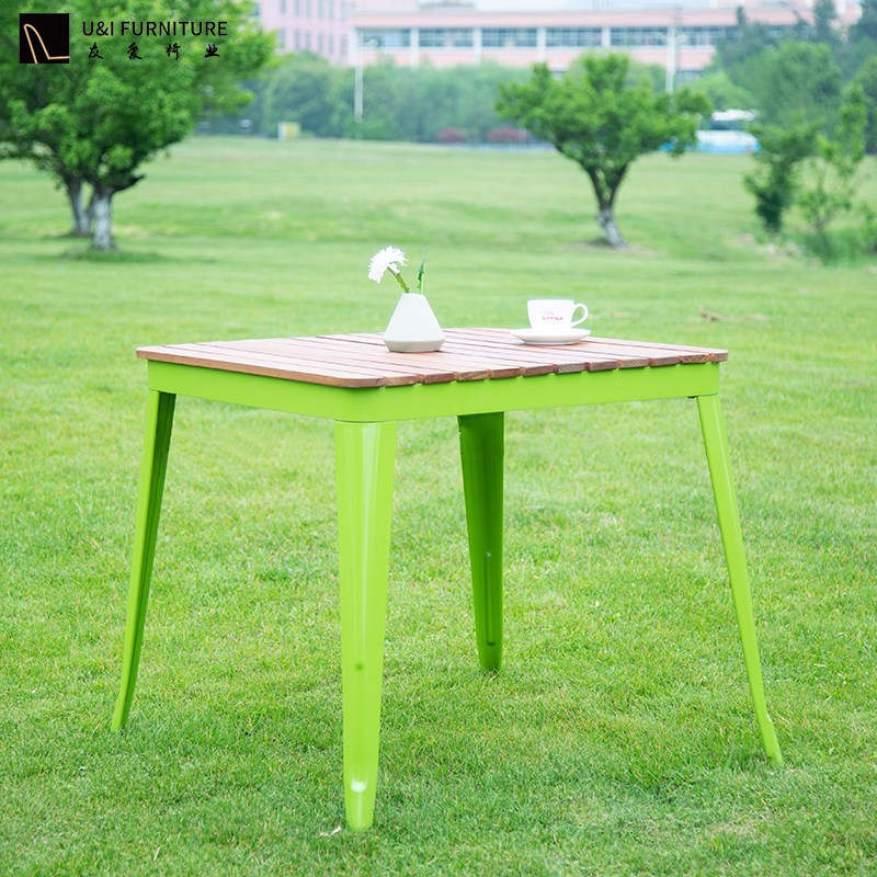Balcony outdoor eucalyptus wood table and chair combination Outdoor Wrought iron small coffee table Simple leisure table set can be made in size