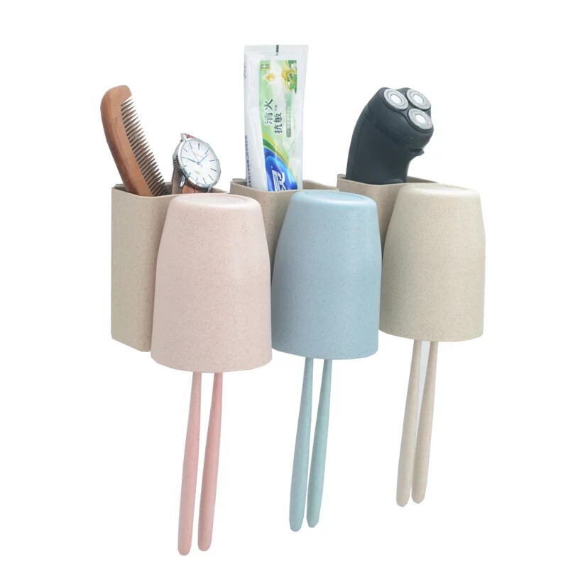 Creative Wheat Straw Suction Wall Type Toothbrush Rack Shelve Makeup Room Wall-mounted Suction Cup Wash Stomp Cup Suit