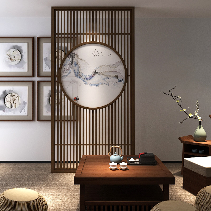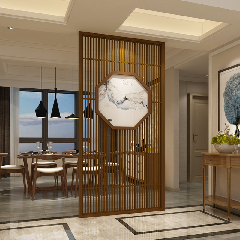 Modern Chinese Screen Screen Partition Living Room Bedroom Hall Entrance Fence Xuan Guan Solid Wood Hollowed-out Seat Screen Custom