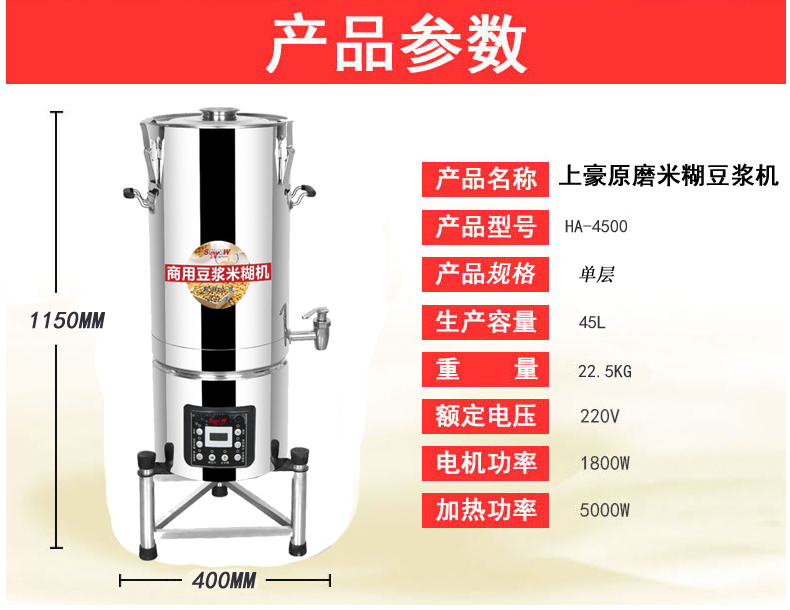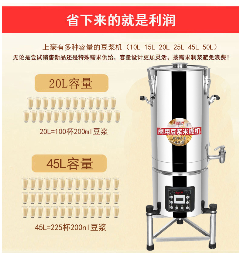 Shanghao Large commercial soymilk machine Automatic large capacity grain multi-function 45L commercial rice blurring soymilk machine