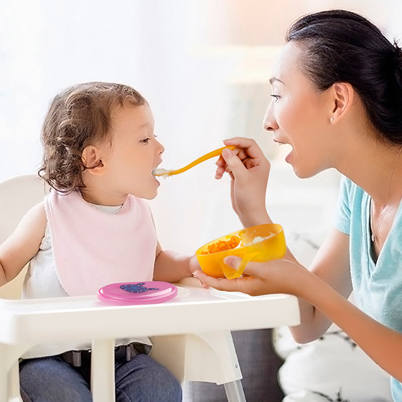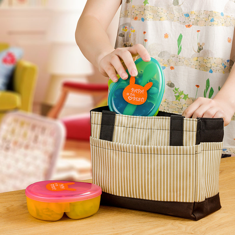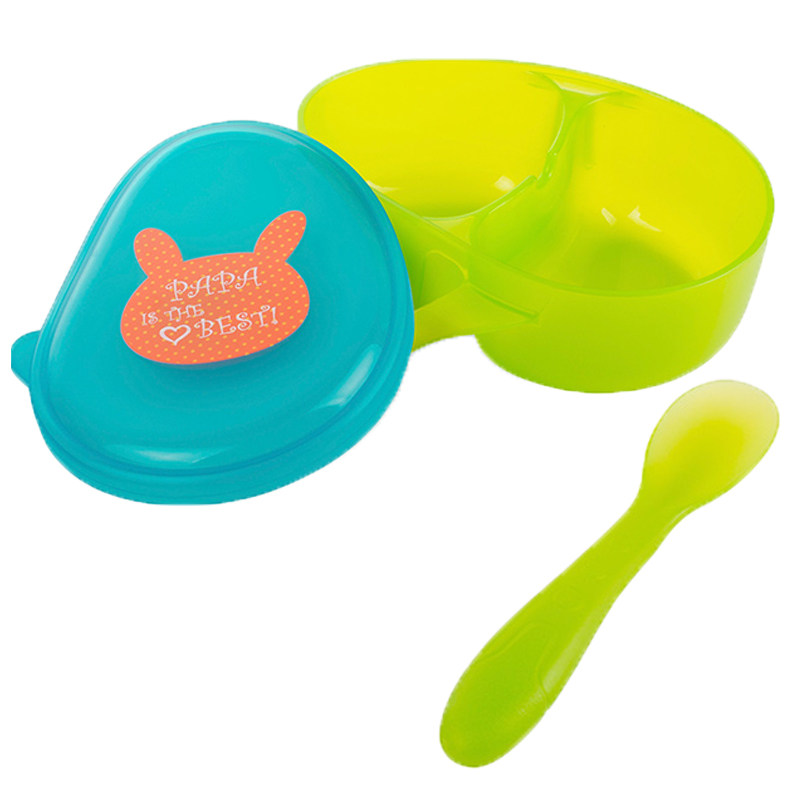 Hong Kong Wo Guo Baby food bowl Portable out baby cartoon tableware set Children's grid bowl with spoon