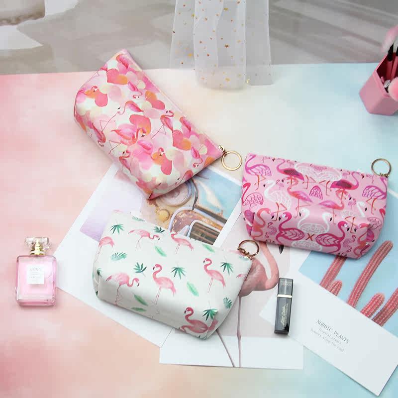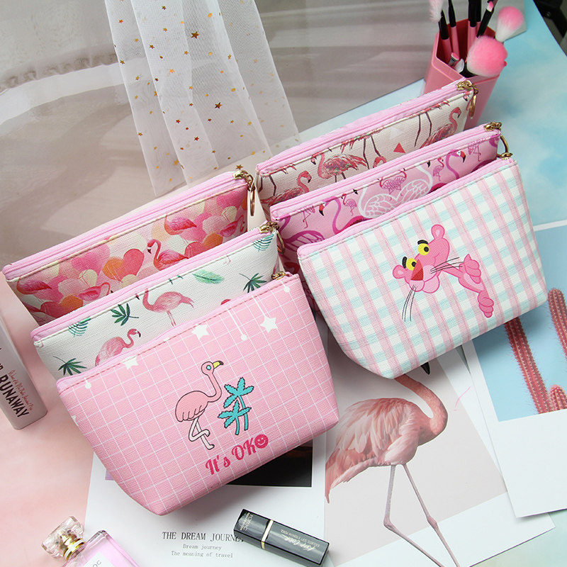Korean version of ins small fresh flamingo pink panther cosmetic bag cute girl heart convenient storage bag wash bag female