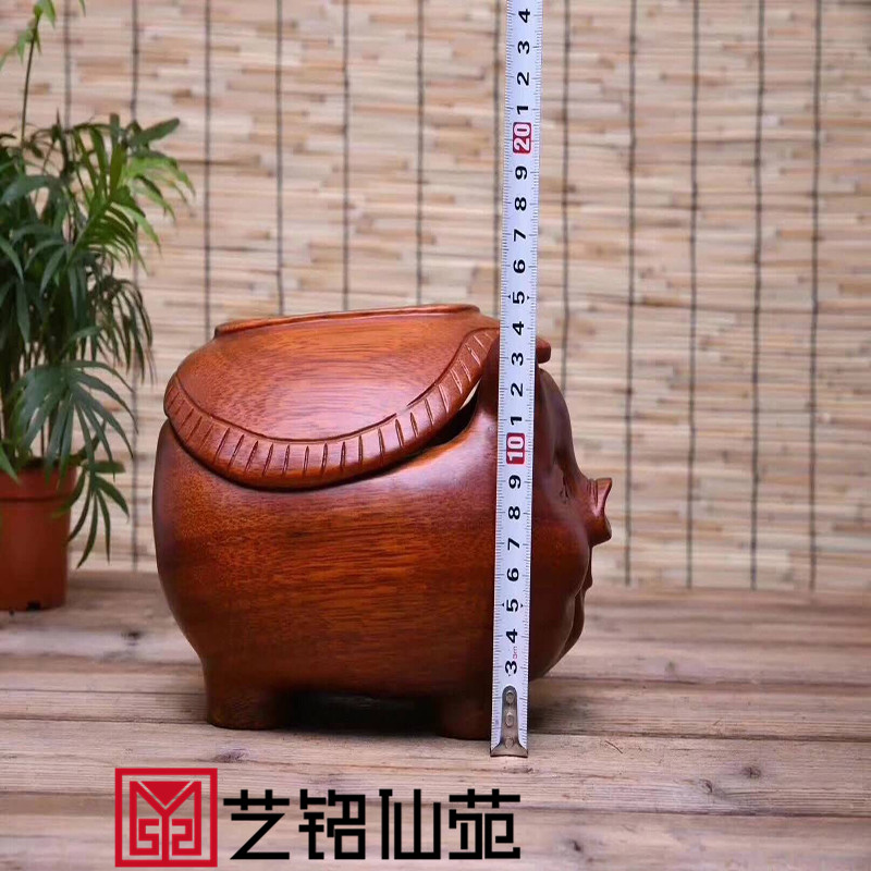 Smiling pig tissue box iron pear wood rich auspicious pig piggy bank Cute and funny new smiley mahogany piggy