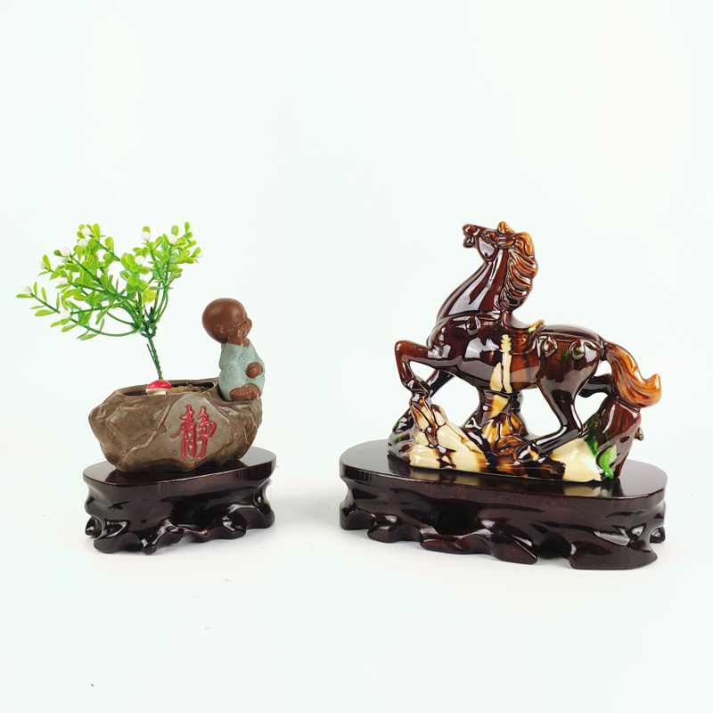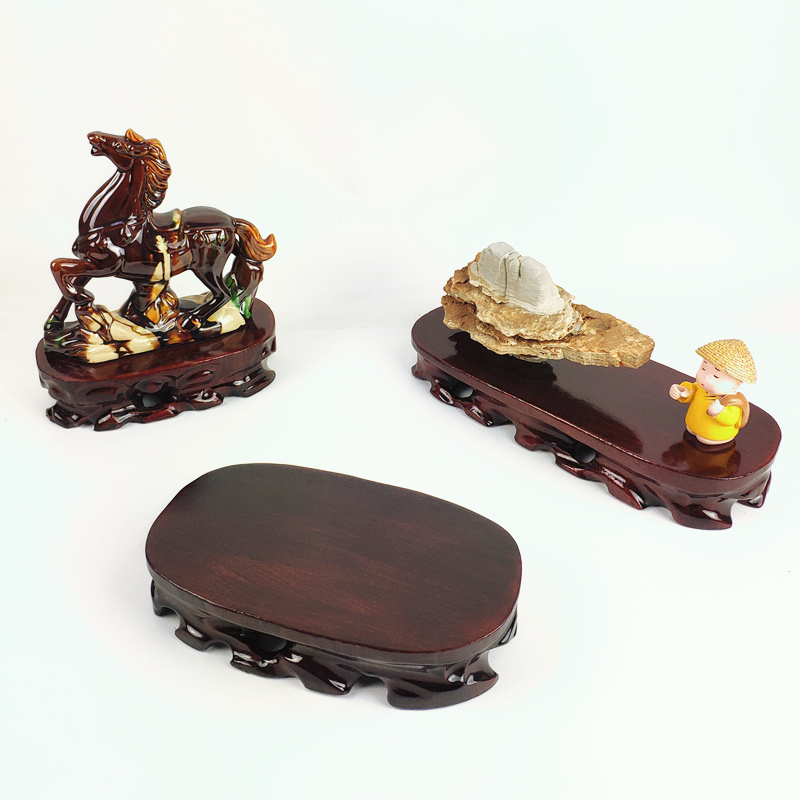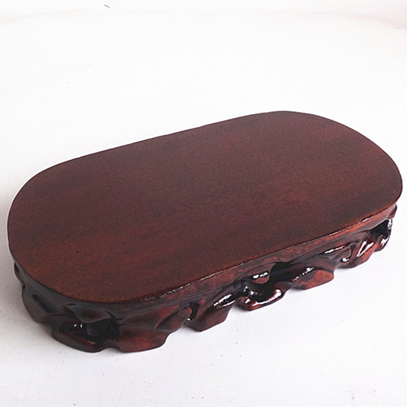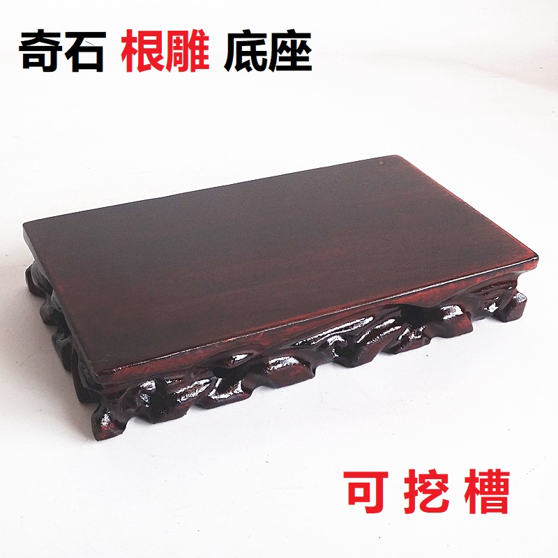 Solid wood root carved strange stone base digging groove flower bonsai ornament oval jade stone wood mount Buddha statue craft gift ornament base