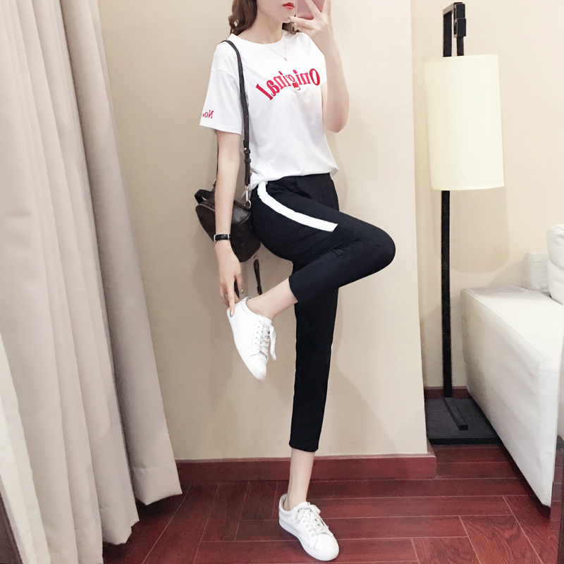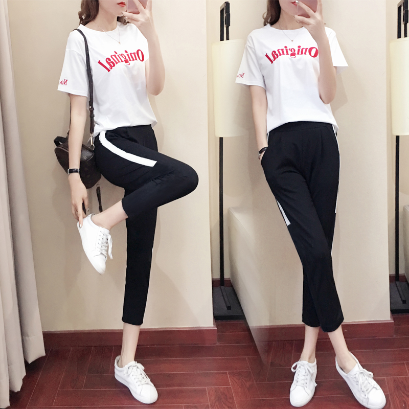 Casual Suit Women's Summer 2022 New Korean Version Loose Short Sleeves 90% Pants Running Sportswear Fashion Two Sets