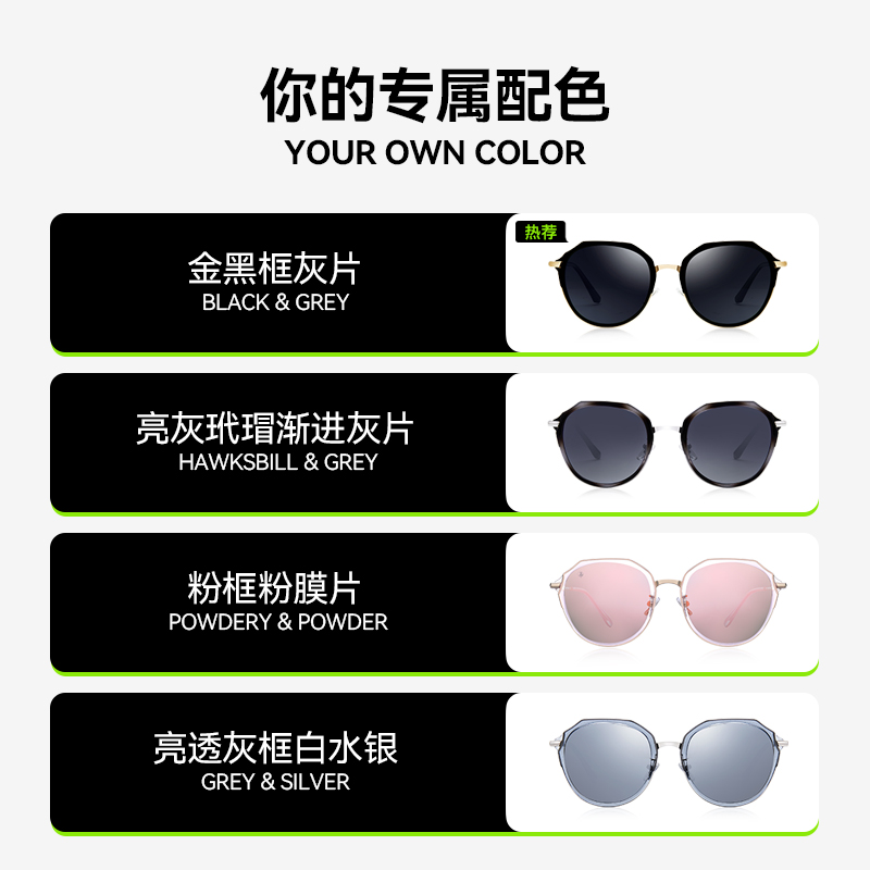 Bright black frame gray flakes Bright grey frame white mercury Bright grey tortoiseshell progressive gray flakes Powder frame powder diaphragm Can contact customer service with myopia sunglasses