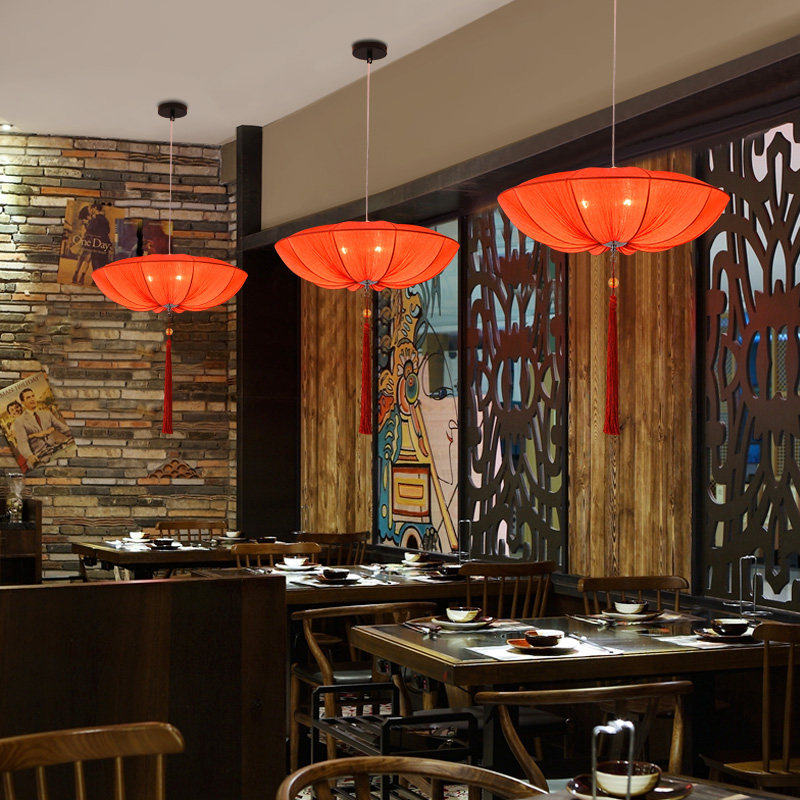 Chinese chandelier flower cloth flying dish antique tea room restaurantRestaurant hot pot shop wedding red lantern lamps