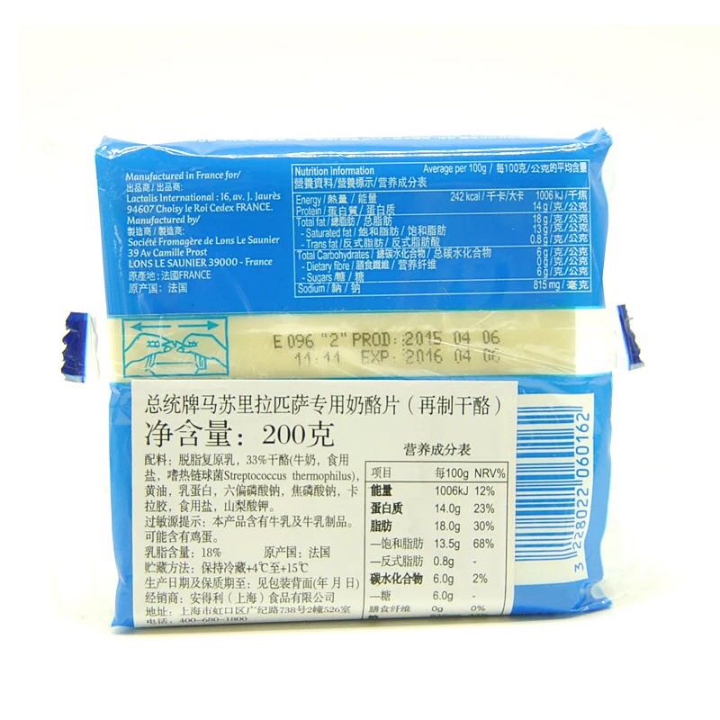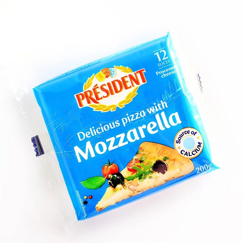 French imported President mozzarella cheese slices original brushed 12 slices pizza baked rice cheese slices 200g